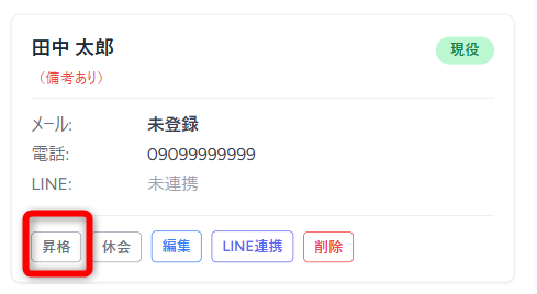 ・メンバー一覧から、権限を与えたい人の「昇格」ボタンを押します。