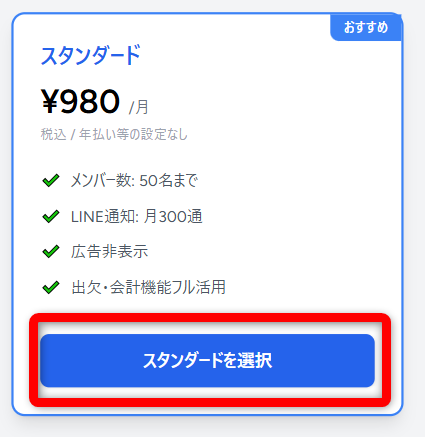 メンバー数の上限を増やしたり、LINE通知機能を有効にするための「プラン変更」について解説します。