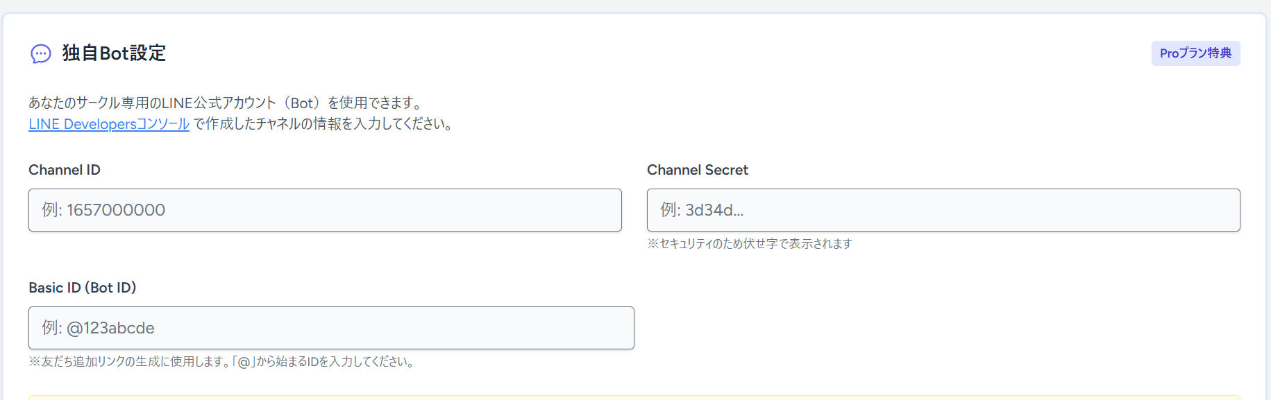 Proプランをご契約の方は、自分たち専用のLINE公式アカウント(Bot)をシステムに連携させることができます。