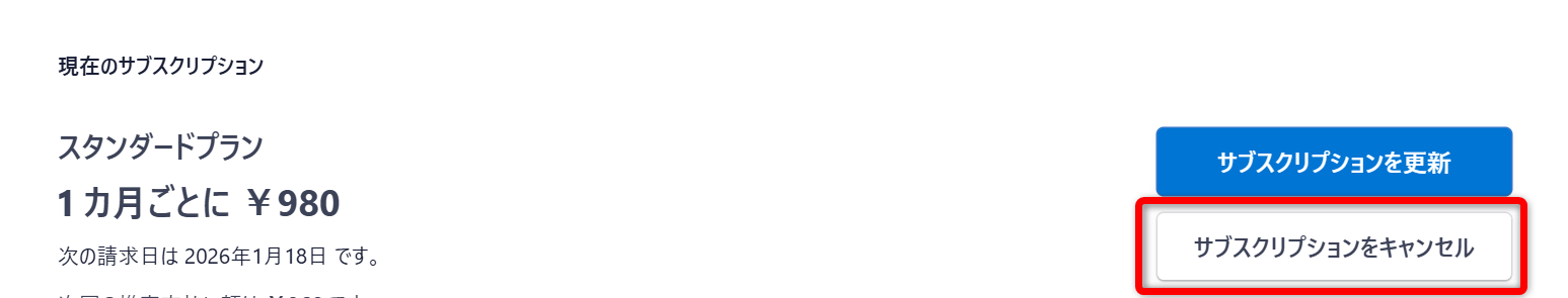 有料プランを解約してフリープランに戻す場合も、上記と同じ「ポータル画面」から操作します。