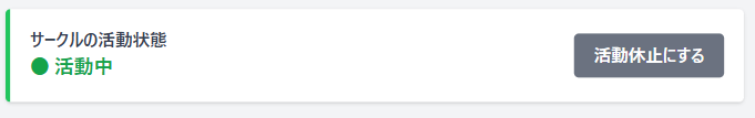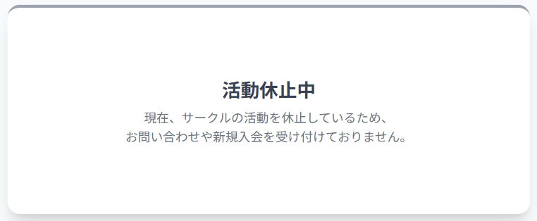 - 活動休止中: 「活動停止」ステータスにすると、ページ全体に休止中の案内が表示されます。