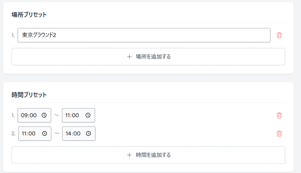 ここで「よく使う場所・時間」を登録しておくと、イベント作成画面でワンクリックで呼び出せるようになります。
